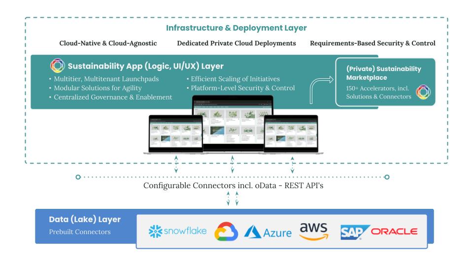 Sustaira adapts to your enterprise environment while maintaining security, compliance, and governance. The platform can be deployed on managed cloud infrastructure or integrated into existing IT landscapes, fully aligned with internal IT policies and global regulatory standards. Sustaira supports deployment on AWS, Microsoft Azure, Google Cloud, and Oracle Cloud, giving organizations flexibility to choose their preferred environment.